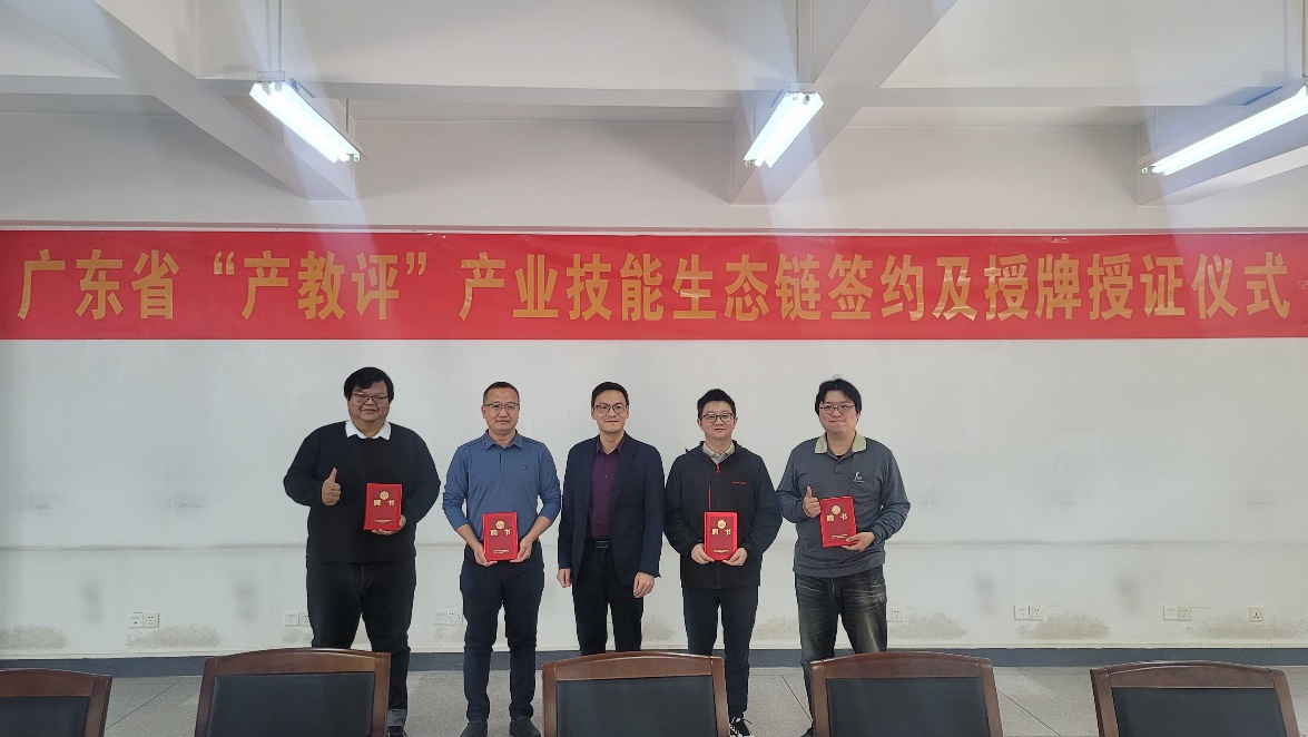 11月22日上午,公司与粤嵌科技共建广东省“产教评”产业技能生态链签约及授牌授证仪式在太阳成集团tyc411举行。公司副经理胡文龙、机器人系系主任谢仲业、智能制造系系主任吕杰融、计算机系系主任陈自豪、创新创业学院办公室张颖君一同出席。副经理胡文龙与粤嵌科技副总理邓人铭签署共建教学实习基地框架协议,邓总经理并为公司多位老师颁发校企合作聘书。